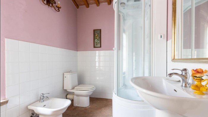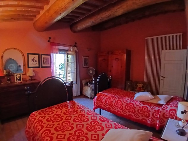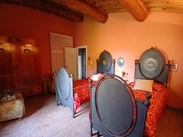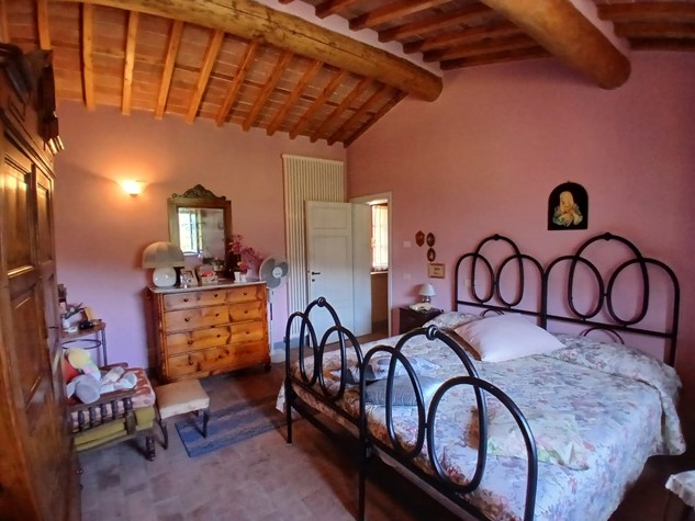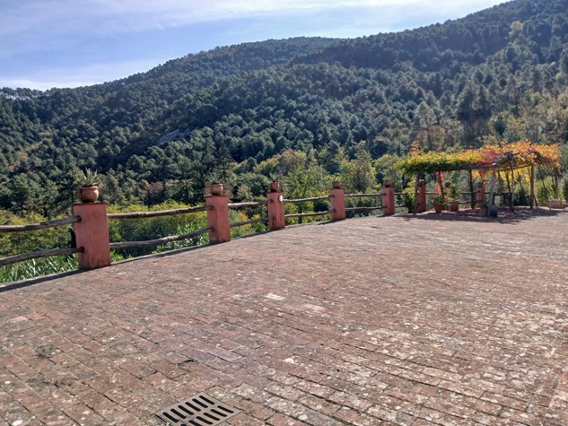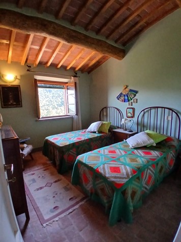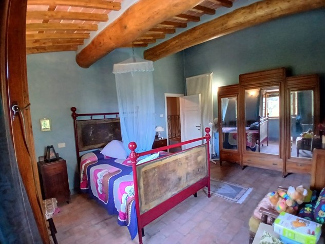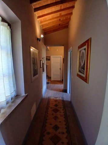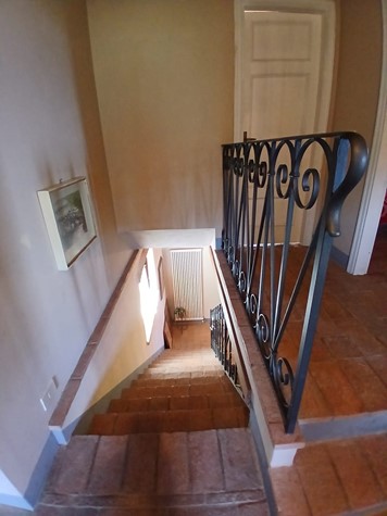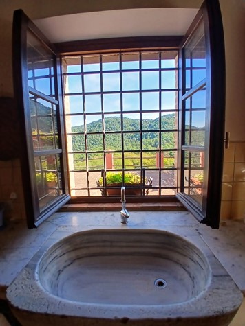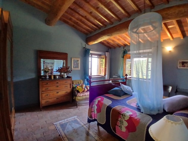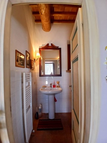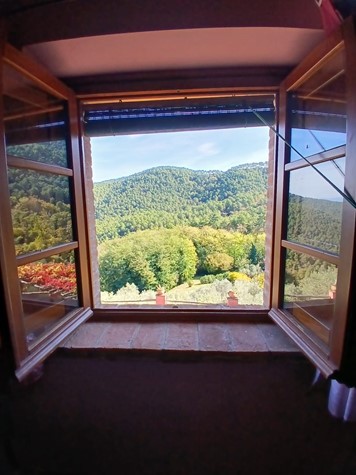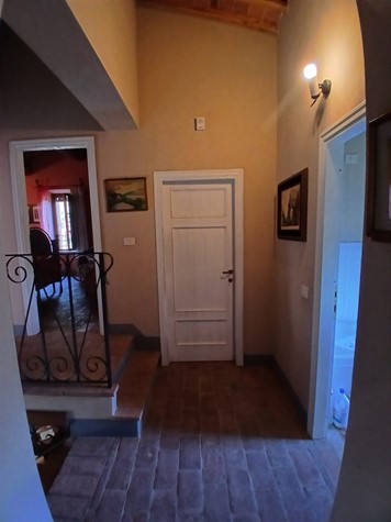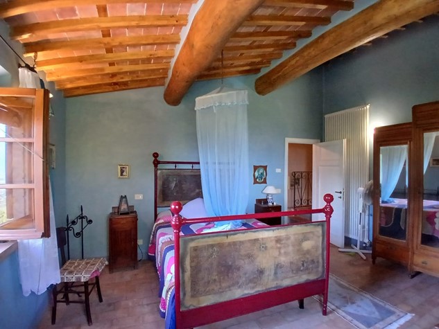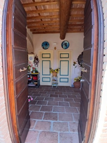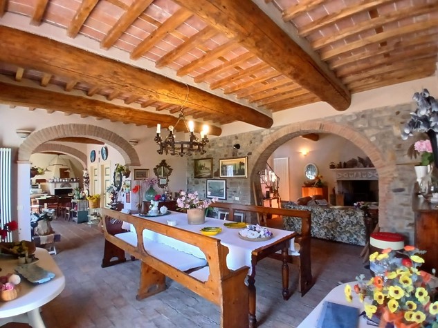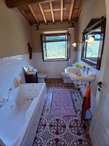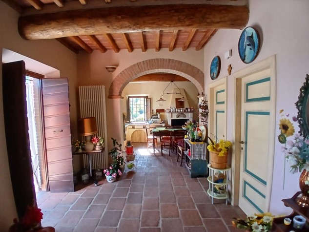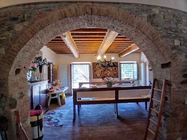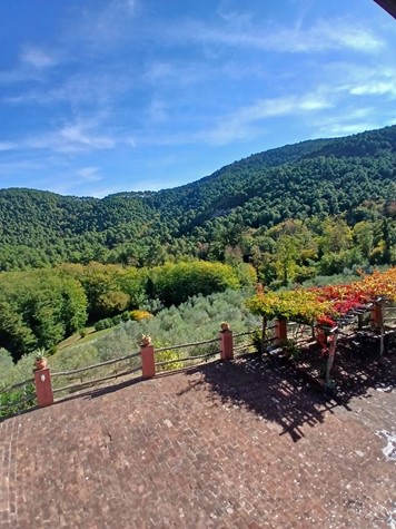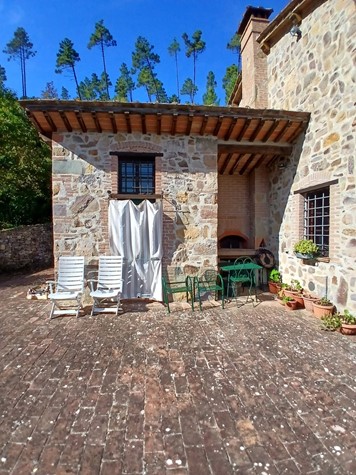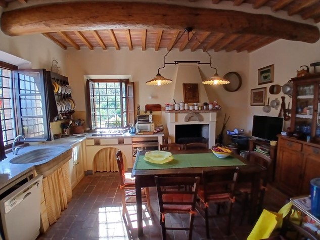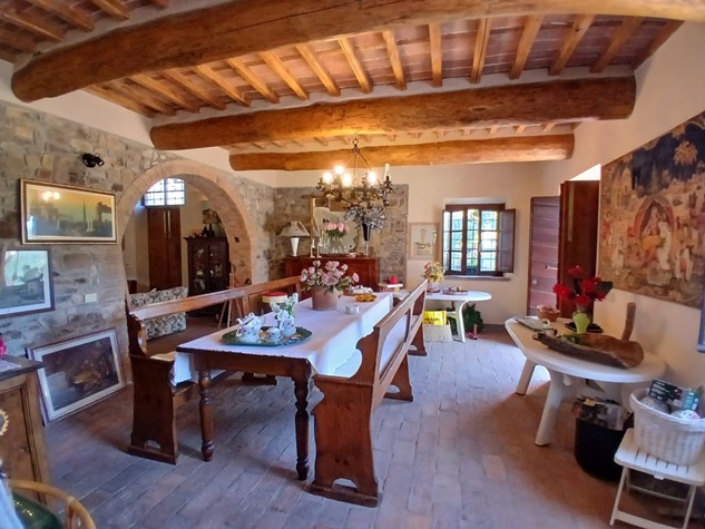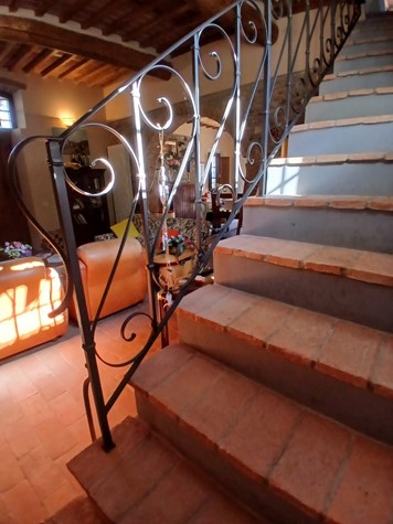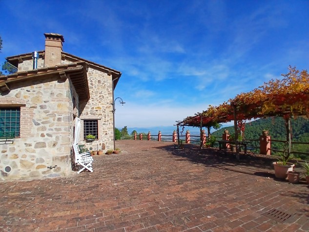 At the end of the road, we find the Farmhouse in a dominant position and the characteristic natural terrace paved with old Tuscan terracotta tiles. From here, you can admire the entire property's land, the vineyard, the olive grove, and the swimming pool further downstream, fed by spring water.