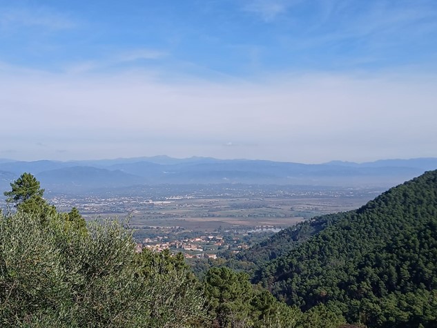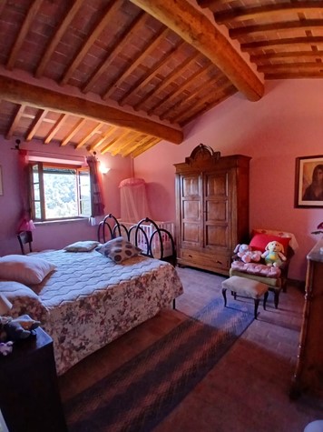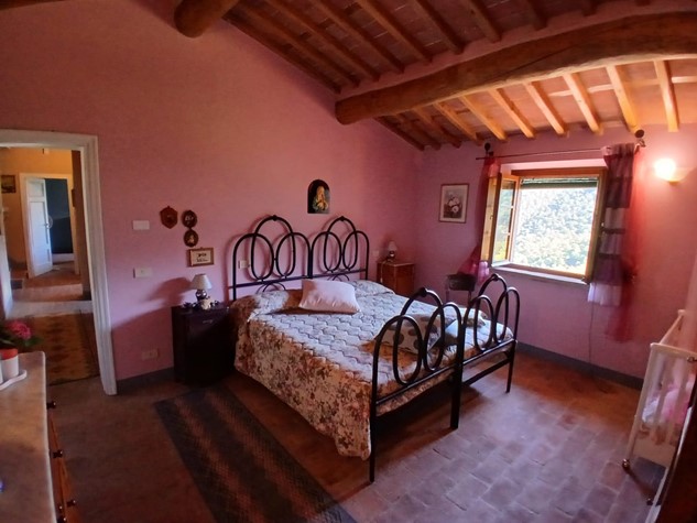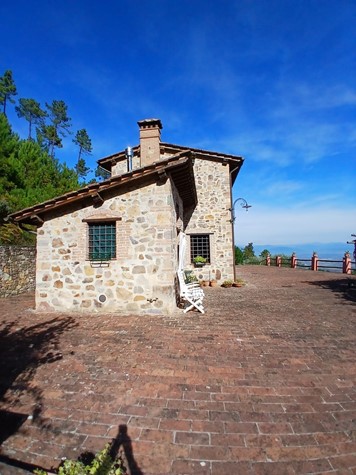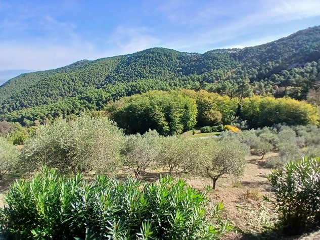 For lovers of unspoiled nature just a stone's throw from amenities, FOR SALE fully renovated STONE FARMHOUSE with a BEAUTIFUL PANORAMA and SWIMMING POOL, complete with 33 hectares of land, mostly woodland, with a vineyard and about 400 producing olive trees.